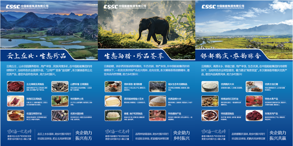 百家央企聚合力,消費幫扶促振興。中船集團積極響應國家號召,自2018年起持續(xù)對云南鶴慶、丘北、勐臘三縣開展消費幫扶,通過“以購代扶、以銷促產(chǎn)”的有效路徑,走出了鄉(xiāng)村振興的堅實步伐。同時,中船集團以“中船集團電子商城”“中船·惠民優(yōu)選”線上平臺為依托,充分挖掘并推廣三個幫扶縣特色農(nóng)產(chǎn)品資源,系統(tǒng)推進消費幫扶工作落地落實。