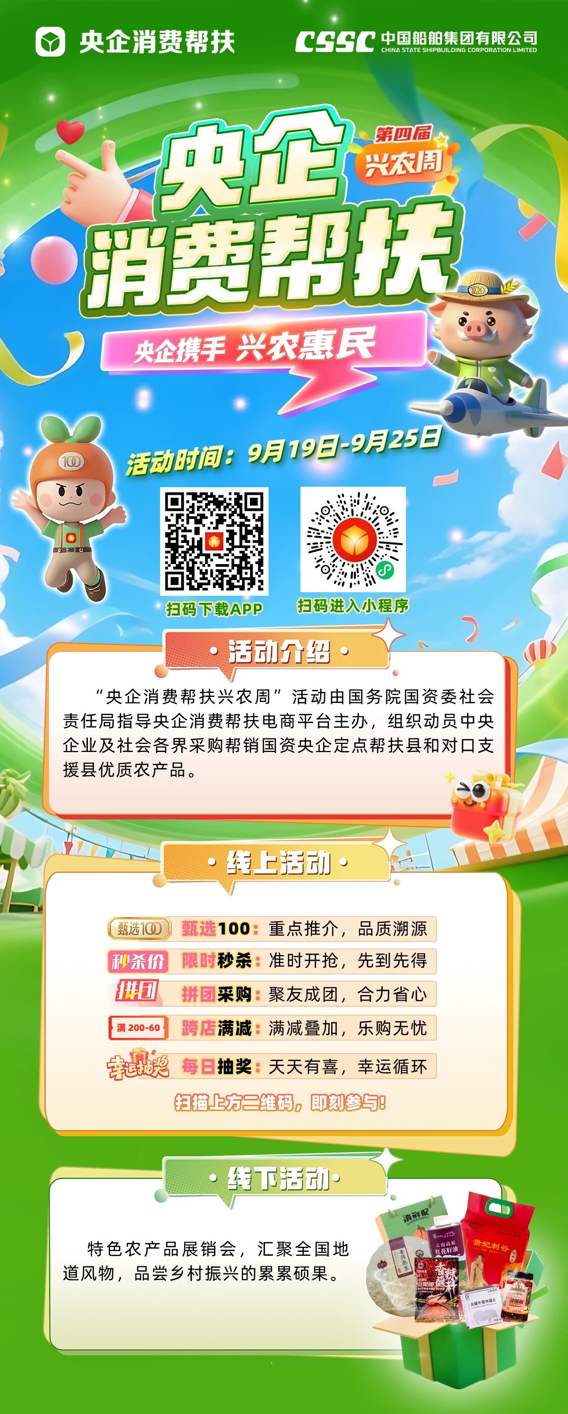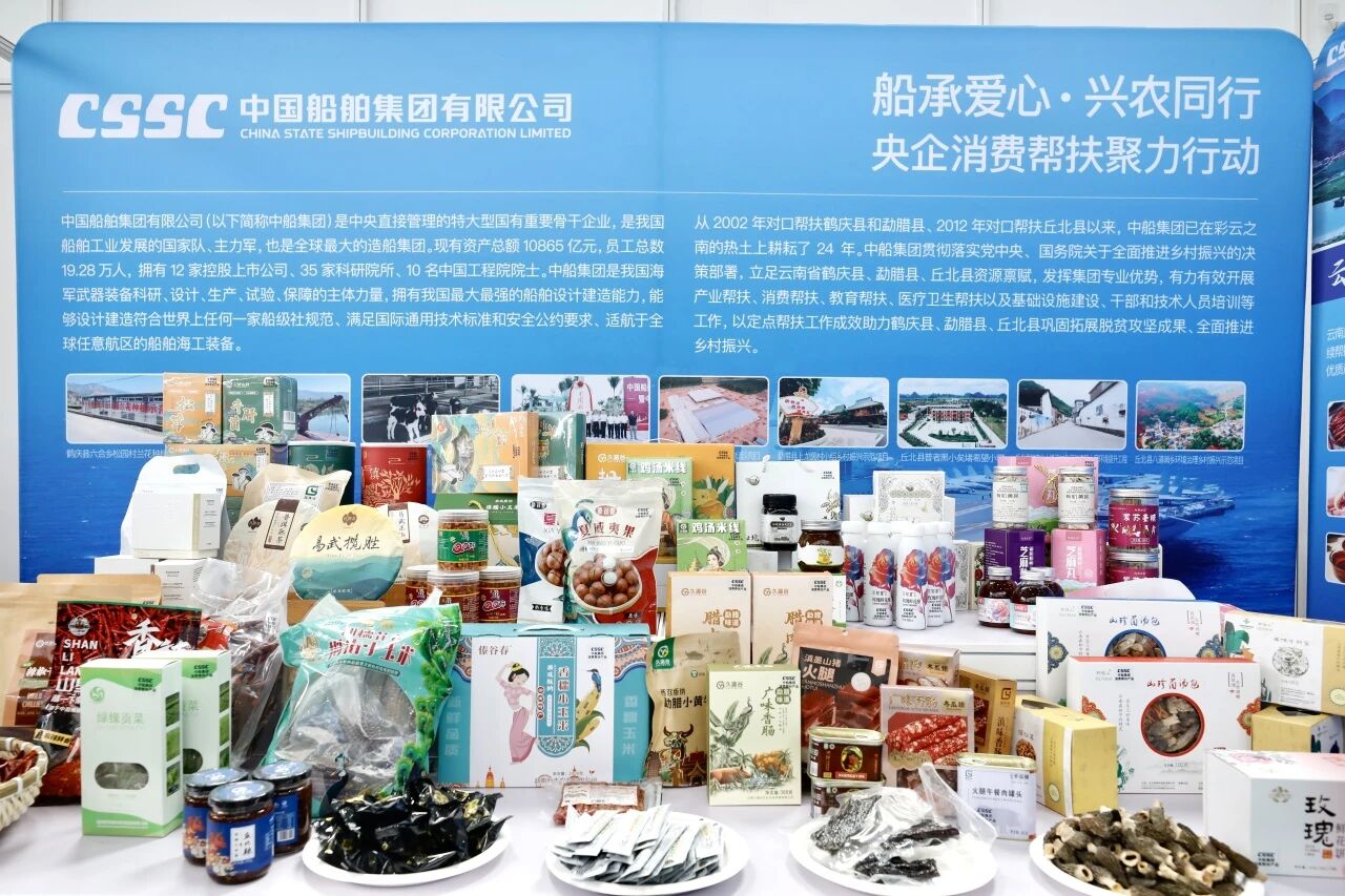 9月19日,以“央企攜手,興農(nóng)惠民”為主題的第四屆“央企消費幫扶興農(nóng)周”活動在北京正式啟動。中國船舶集團有限公司在同期舉行的特色農(nóng)產(chǎn)品展銷會上精心布置了特色展區(qū),現(xiàn)場展銷來自其定點幫扶的鶴慶、勐臘、丘北三縣的110款優(yōu)質(zhì)特色農(nóng)產(chǎn)品。