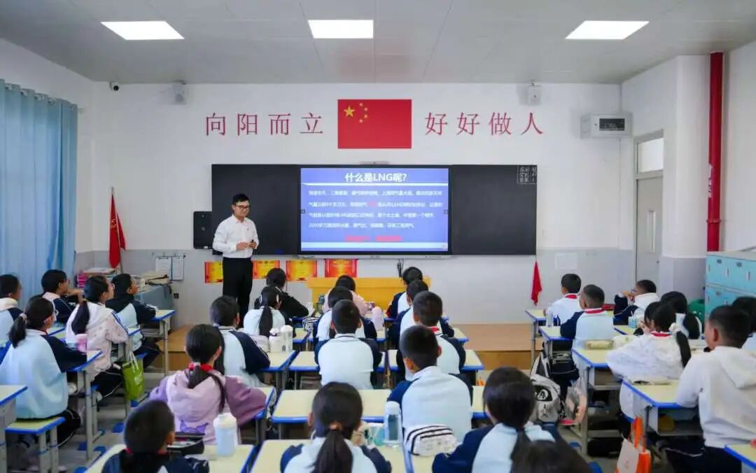 同時(shí),志愿者為94名小學(xué)生帶去3堂科普課程,回顧人民海軍發(fā)展歷程,厚植孩子們的愛(ài)國(guó)情懷;精講民用船舶種類,點(diǎn)亮孩子們的探索精神;揭秘LNG船關(guān)鍵技術(shù),展現(xiàn)中國(guó)“智”造實(shí)力,增強(qiáng)孩子們的自豪之感。課程中,志愿者們深入淺出講解,學(xué)生們?nèi)褙炞W(xué)習(xí),同學(xué)們感受到中國(guó)船舶“智領(lǐng)深藍(lán)”的魅力,紛紛提問(wèn):護(hù)衛(wèi)艦一次能航行多遠(yuǎn)?一艘LNG船能載多少噸液化天然氣?“海上帶貨王”到底有多大?……孩子們展現(xiàn)出對(duì)國(guó)防和海洋的濃厚興趣。