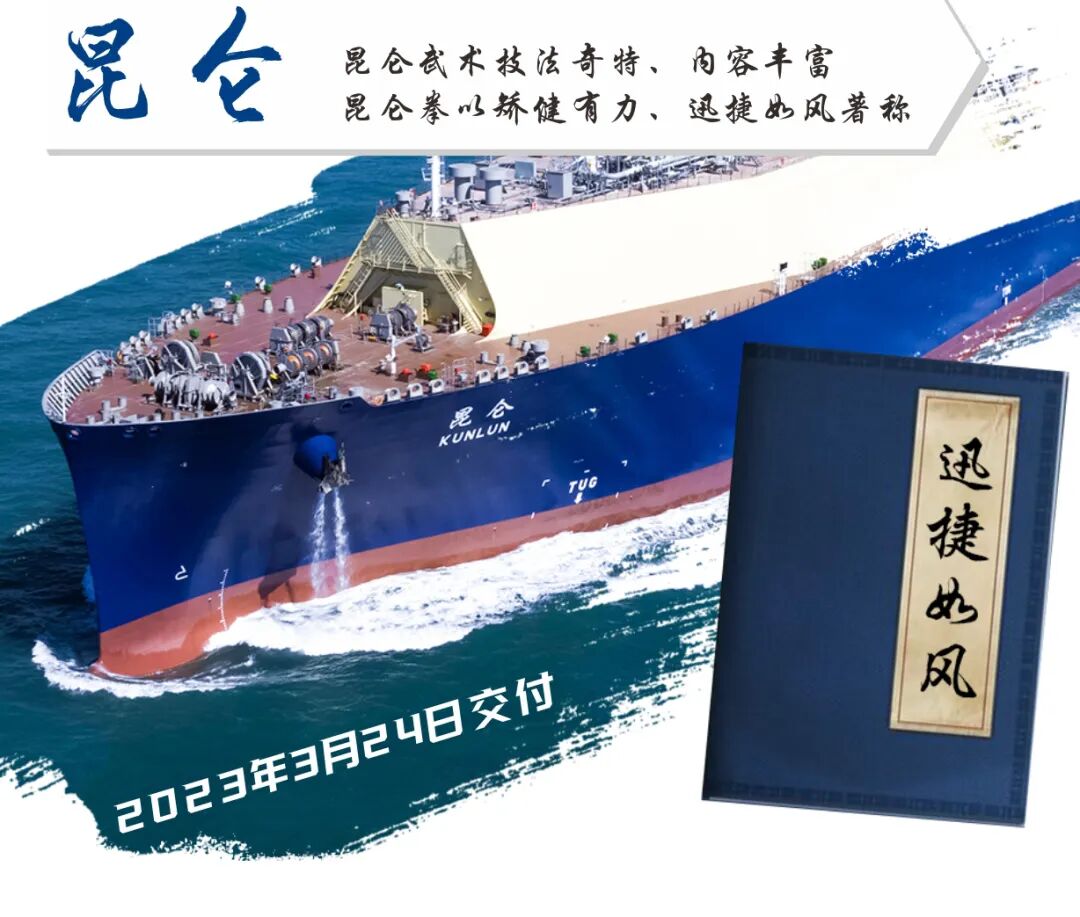 中遠(yuǎn)海運(yùn)中石油國事LNG運(yùn)輸項(xiàng)目共簽約三期8艘 17.4萬方LNG船。之前,滬東中華已完成一期、二期項(xiàng)目——“少林”“武當(dāng)”“昆侖”“峨眉”“華山”“崆峒”6艘LNG船均已交付。隨著“青城”號的命名交付,如今已經(jīng)集齊了“七大門派”。快跟隨小新的步伐,一睹“武林爭霸”的風(fēng)采!