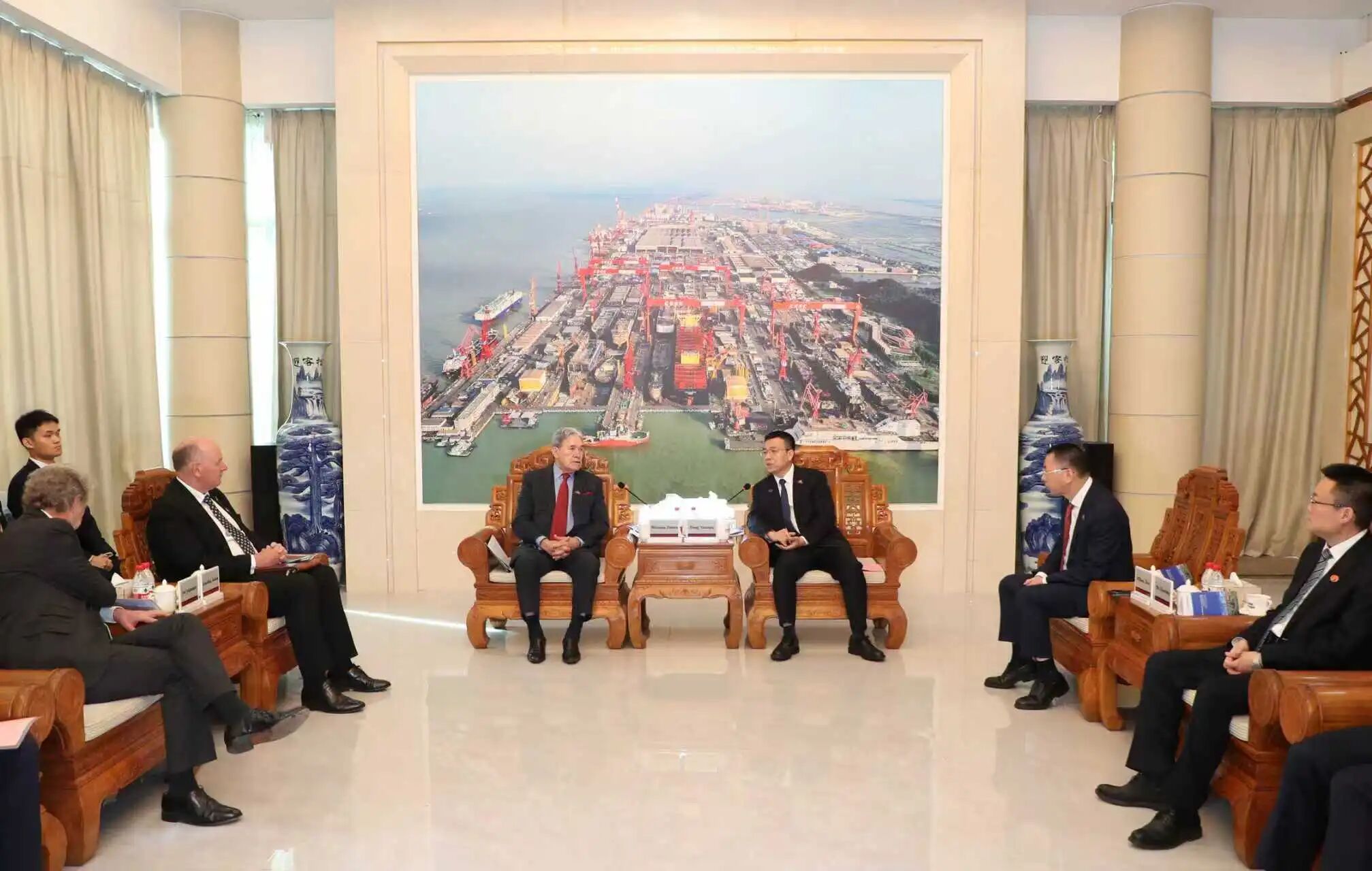 新西蘭外交部兼鐵道部部長(zhǎng)Winston Peters(溫斯頓·彼得斯)、新西蘭FHL公司董事長(zhǎng)Chris McKenzie(克里斯·麥肯齊)、中船集團(tuán)副總經(jīng)理彭原璞出席簽約儀式并致辭,新西蘭駐華大使Jonathan Austin(喬·文博)、駐廣州總領(lǐng)事Michael Zhang(張典)等出席簽約儀式。